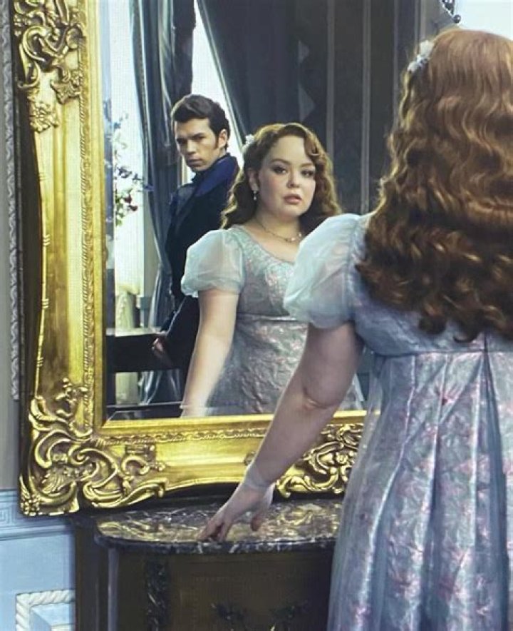 The mirror scene is a private moment between Penelope Featherington and Colin Bridgerton.