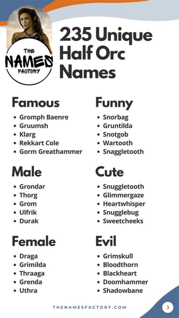 +90 HalfOrc Names Ideas Names Cherry